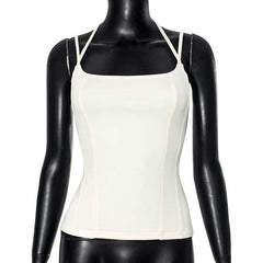 This elegant cream sleeveless top features a double-strap design and a fitted, structured silhouette that contours the body beautifully. Crafted from a smooth, stretchy fabric, it offers both comfort and style, making it perfect for casual outings or layered for a more polished look. The subtle stitching details add a touch of sophistication, while the versatile color pairs effortlessly with skirts, jeans, or tailored pants for a chic, modern ensemble.