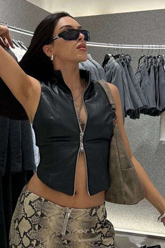 PU Solid High Neck Top