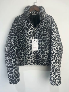 Make a bold fashion statement with this stylish Animal print puffer jacket. Featuring a cozy quilted design, high collar, and full-length zipper, this jacket is perfect for staying warm while turning heads. The eye-catching animal print adds a fierce touch to your casual wardrobe, making it ideal for chilly days and outdoor outings. Pair it with jeans or leggings for an effortlessly chic look that combines comfort and style.