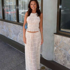 Crinkle Chiffon Two-Piece Set - L, Light Beige image