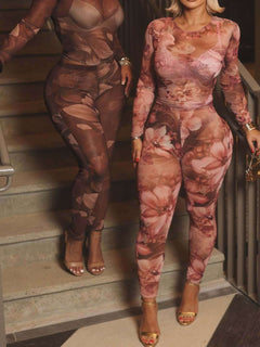 Floral Two-Piece Set with Top & High-Waisted Pants