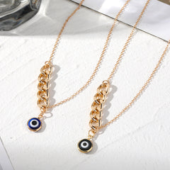 Elevate your accessories collection with this stylish gold chain necklace featuring a striking evil eye pendant. The combination of a delicate chain and bold, chunky links creates a perfect balance of elegance and edge. The evil eye charm, believed to ward off negative energy, adds a meaningful touch to this chic jewelry piece. Ideal for everyday wear or special occasions, this necklace is a versatile addition to any outfit.