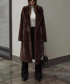 This sophisticatedlong coat features a classic design with a wide collar and a matching belt that accentuates your waist. Crafted from soft, warm material, it offers both comfort and timeless style. Perfect for chilly days, this long coat adds a touch of elegance to any winter wardrobe, making it ideal for outdoor strolls or casual outings.